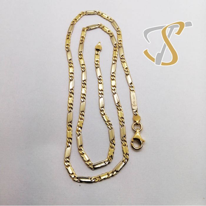 Vista rápida Referencia: JST0600018 Cadena Cadena de eslabones alternos en dos oros. Precio 169,42 € Añadir al carrito Más Disponible