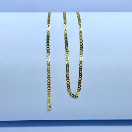 Vista rápida Referencia: JST0600018 Cadena Cadena de eslabones alternos en dos oros. Precio 205,00 € Añadir al carrito Más Disponible