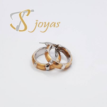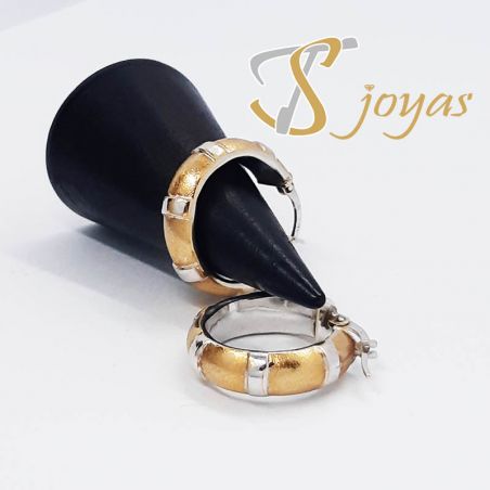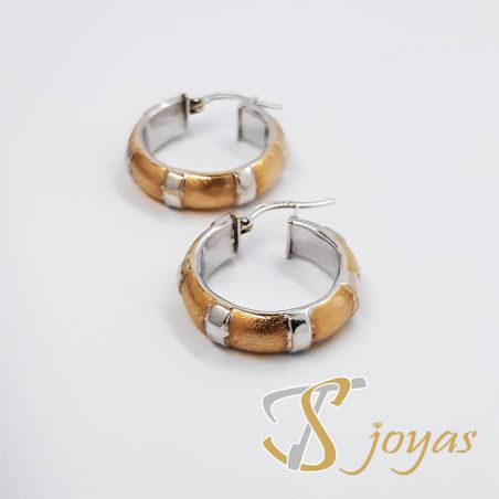 Par de pendientes de aro en dos oros.