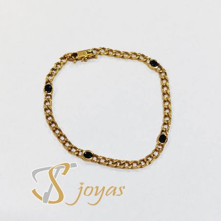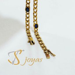 Pulsera malla barbada con piedras semipreciosas azules.